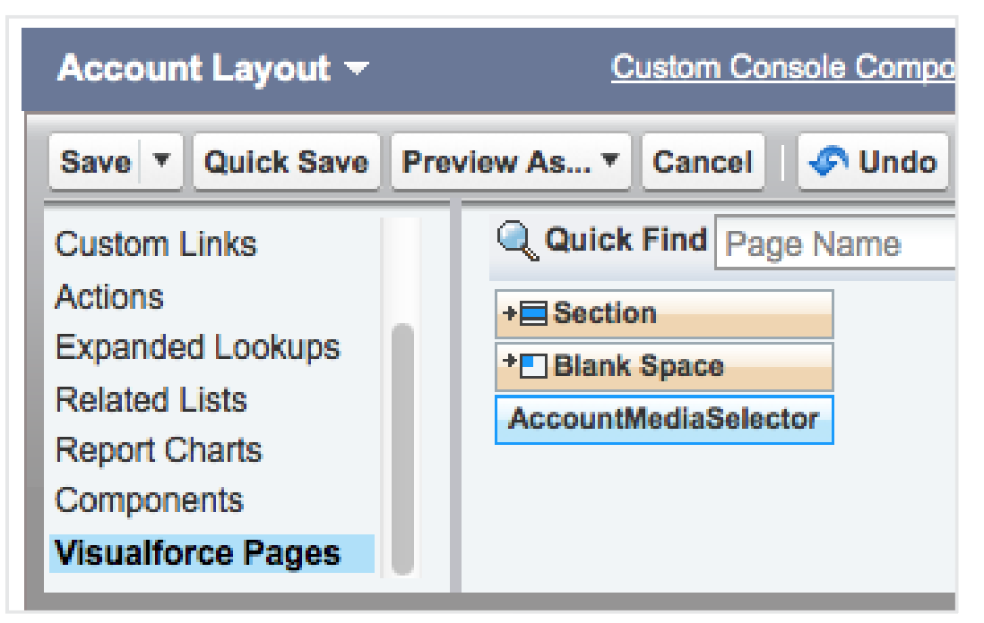 - Add the Visualforce page for the Media Lookup component to the relevant page layouts for the object.