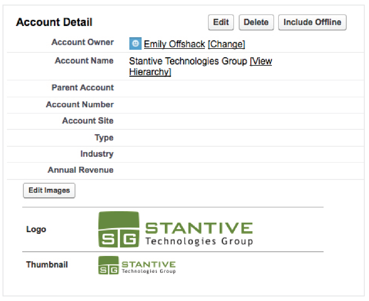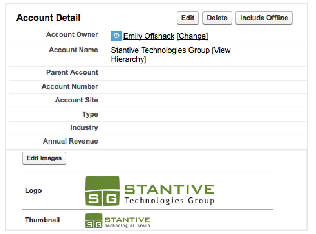 - Go to the detail page of the Salesforce record that you want to add an image to.