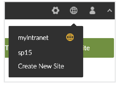 - If your organization already has one or more sites added to your OrchestraCMS installation, you are directed to the OrchestraCMS user interface. From the Current Site menu, select Create New Site.