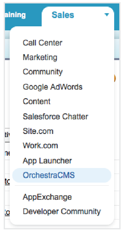 - From the Force.com app menu, click OrchestraCMS.