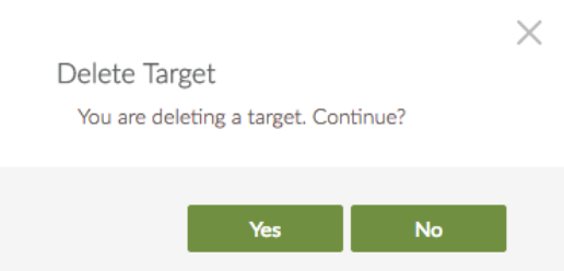 - In the Delete Target dialog, click Yes; if the target is applied to one or more pieces of content, a message confirms this and you will not be able to delete the target.