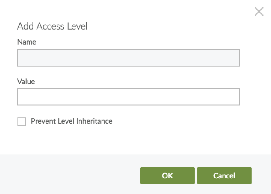 - If you do not want the Value field to cause access rule inheritance as described above, click to select Prevent Level Inheritance.