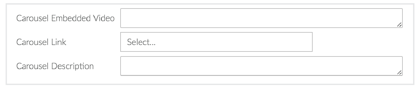 - In the content editor, in the Carousel Embedded Video box, enter HTML code to embed a video. (You will first need to get the code from YouTube once you have created your video for YouTube. For more information: https://support.google.com/youtube/answer/171780?hl=en )
