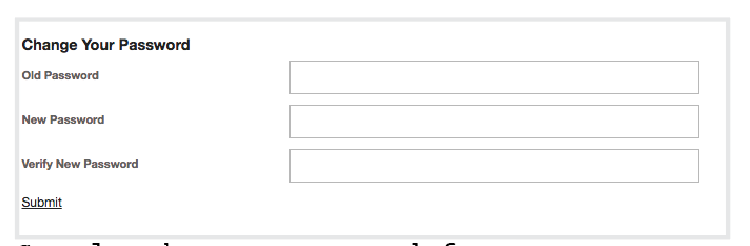 The Change Password Form content template inserts a form that allows a portal user to change his or her password. The fields for the form are standardized.