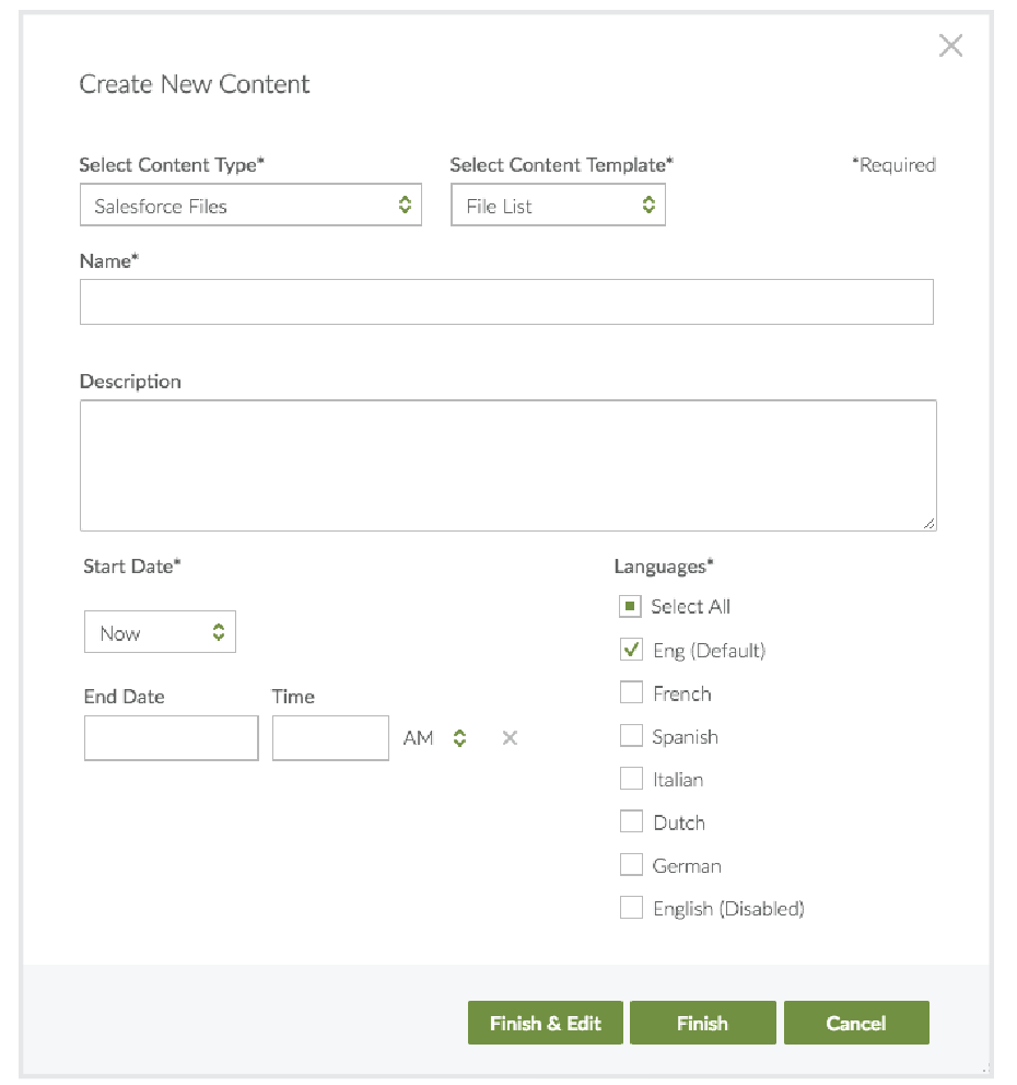 - In Select Content Template, File List is the default.