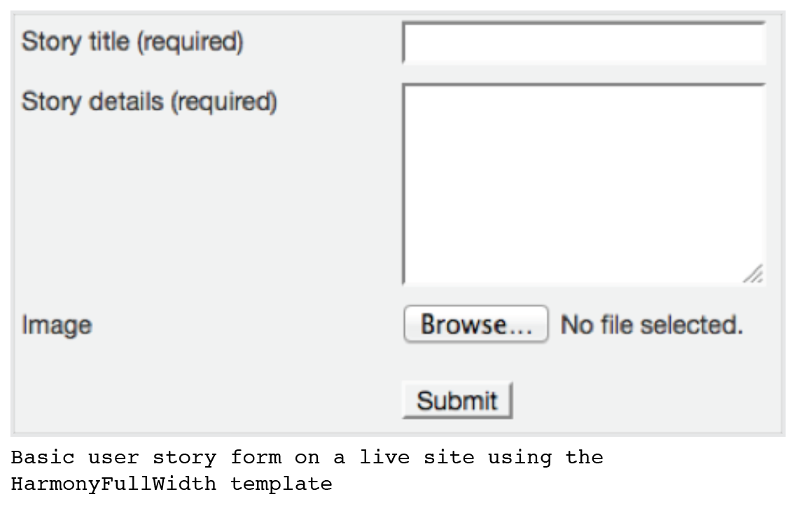 - Attachment. This field is optional; it allows users to add images to their stories (although this field allows users to select files other than images, only images will display correctly).