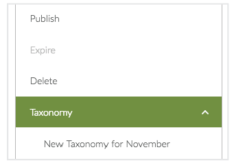 - In the content editor, in the Actions panel, click Taxonomy, and select the taxonomy you use for email notifications.
