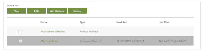 - Click to select the check box beside an automatic email schedule, and then click Edit Options.