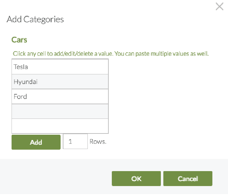 - In the Add Categories dialog, type the names of the categories that you want to add to that level of the hierarchy by typing each category name (e.g., publication name) on a separate line.