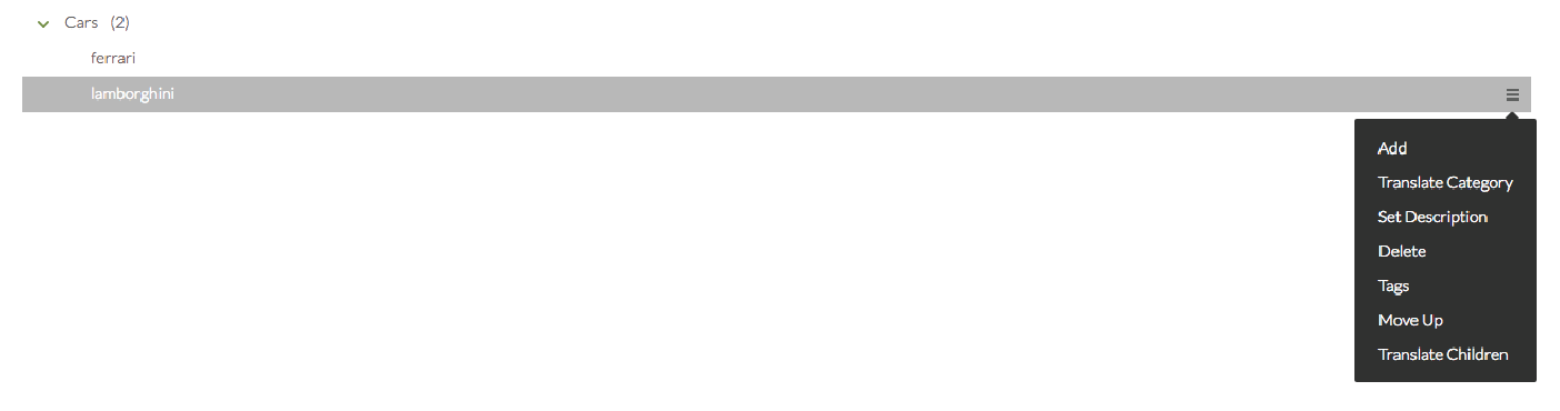 After the taxonomy is created, you can add more categories, remove categories, and reorder categories by clicking the arrow next to the category name. You can’t move categories to a different parent category.