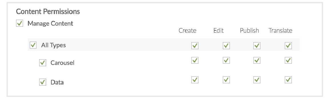 - Under the Content Permissions area, add or remove one or more of the Create, Edit, and Publish permissions for the new content type; permissions for new content types might already be added to the profile, but will not be active until the profile is saved again.