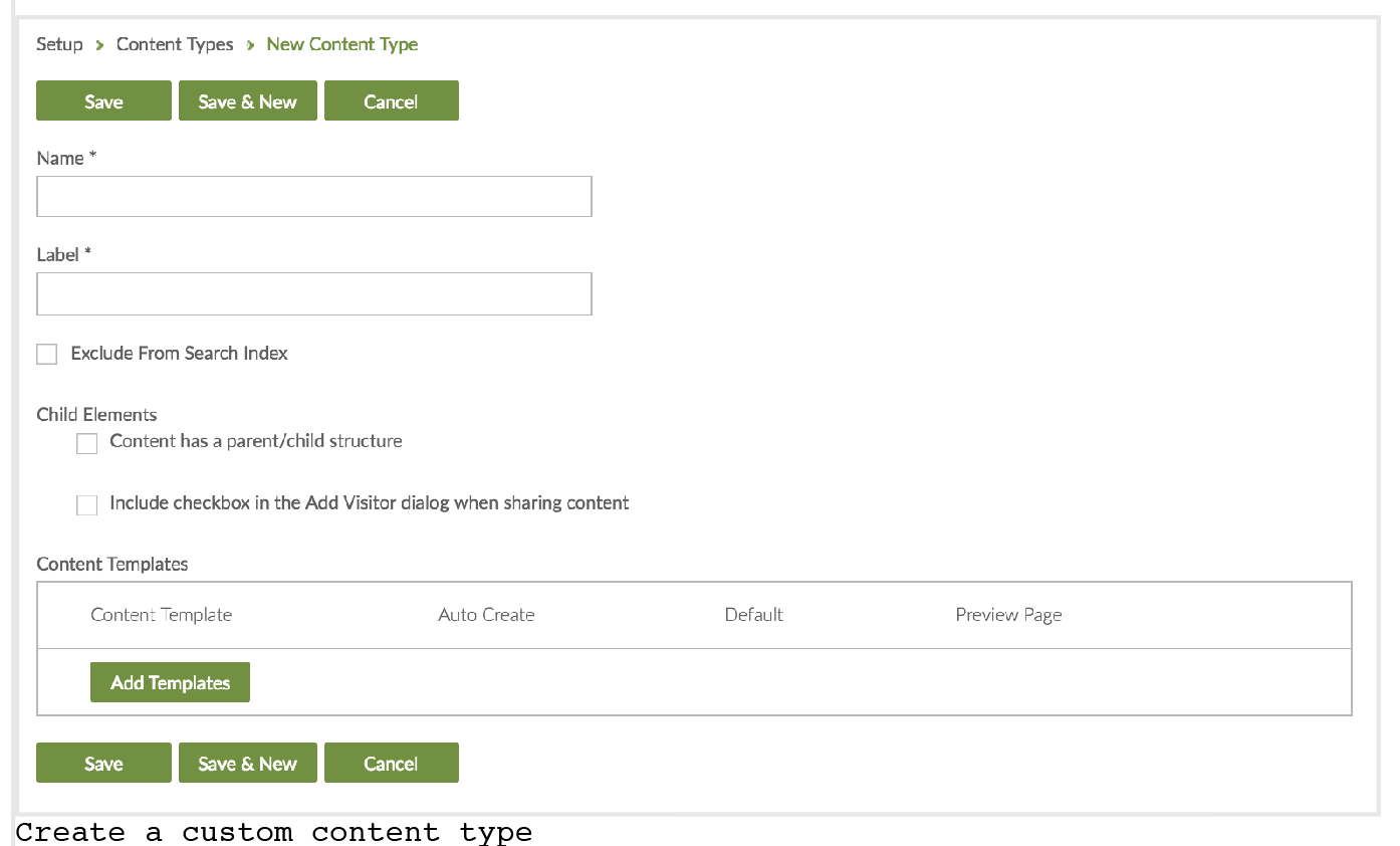 - Once you type in a name for your new content template, the label field will automatically populate.