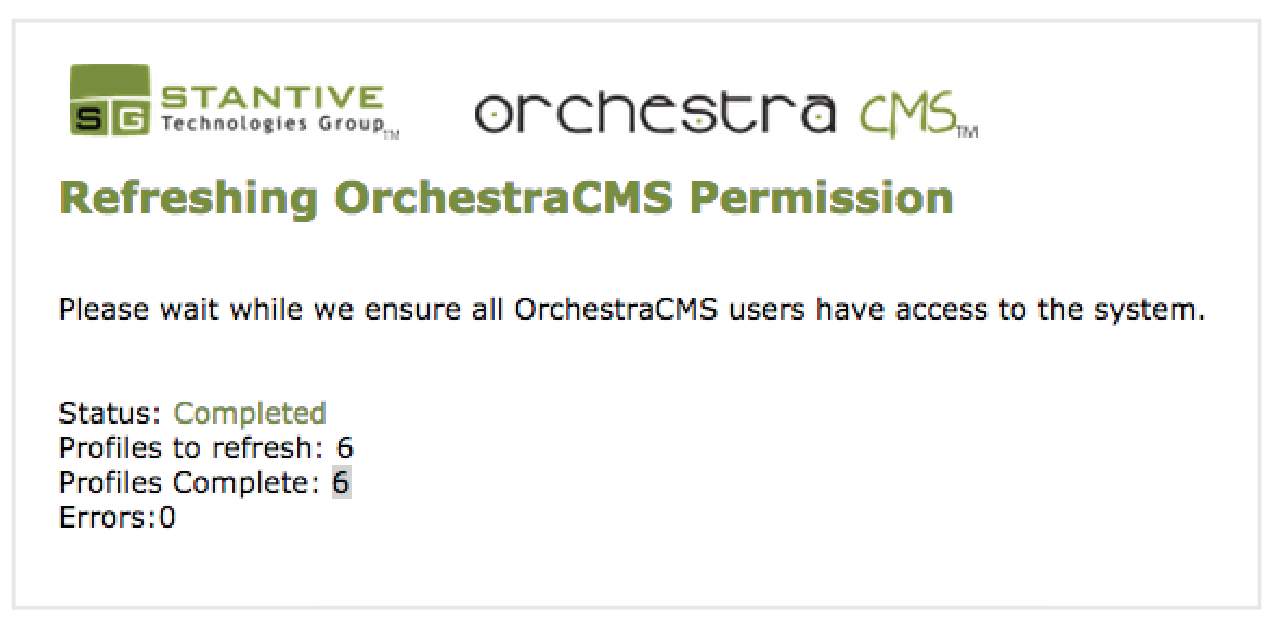 An upgrade to OrchestraCMS Winter 2018 will automatically generate permission sets when the system administrator first logs in to OrchestraCMS after install.