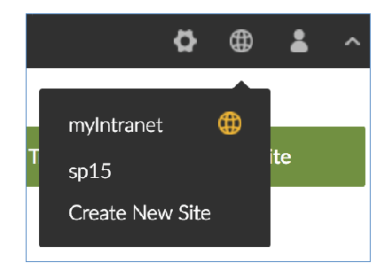 - If your organization already has one or more sites added to your OrchestraCMS installation, you are directed to the OrchestraCMS user interface. From the Current Site menu, select Create New Site.