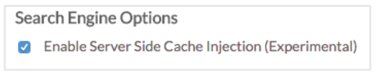 - Under Search Engine Options, click to select the Enable Server Side Cache Injection (Experimental) check box.