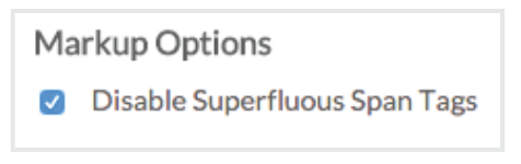 - Under Markup Options, click to select the Disable Superfluous Span Tags check box.