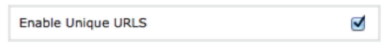 - Under URL Options, click to select the Enable Unique URLs check box or the Enable Case-sensitive URLs check box.