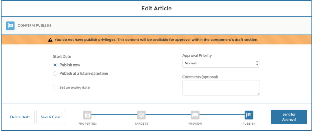 - Send for Approval is now prevented if the minimum required content is not met for a panel on the page.