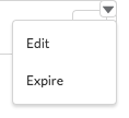 - To expire a piece of content, click Preview and then click the small arrow in the content to display a small dropdown menu. From here you can expire or delete.